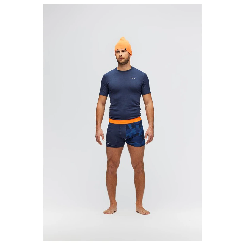 Pour la randonnée ou l’escalade alpine, le sous-vêtement en laine mérinos Cristallo Warm AMR Tee de Salewa sert à tout ! Le mélange de matériaux est agréablement doux et confortable. La laine mérinos vous réchauffe, mais comme elle régule la température, vous n’avez pas trop chaud. En plus, l’humidité est vite évacuée vers l’extérieur. Comme la laine mérinos est naturellement antibactérienne, elle empêche la formation de mauvaises odeurs. Le haut est élastique et équipé de goussets placés de manière ingénieuse, ce qui promet une bonne liberté de mouvement. La fibre de laine est renforcée par un filage innovant pour que le haut tienne plus longtemps. Voilà un vêtement ingénieux !